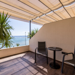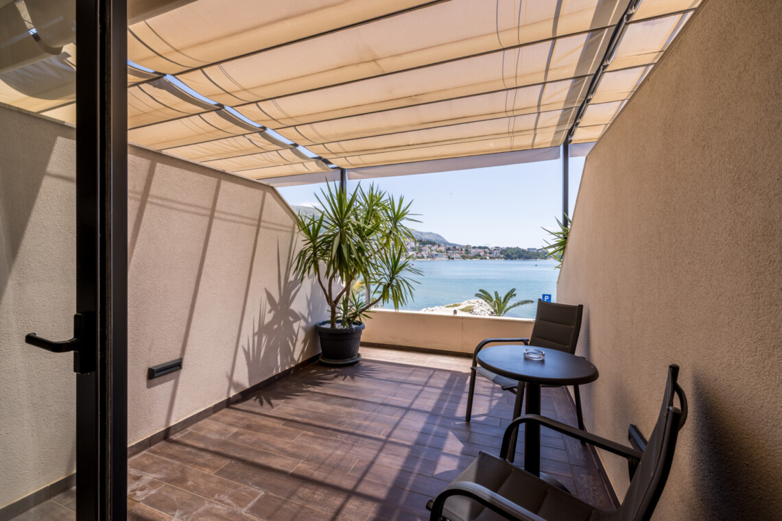 The private balcony with outdoor seating invites you to unwind with sea or city views – ideal for enjoying morning coffee or a quiet evening.