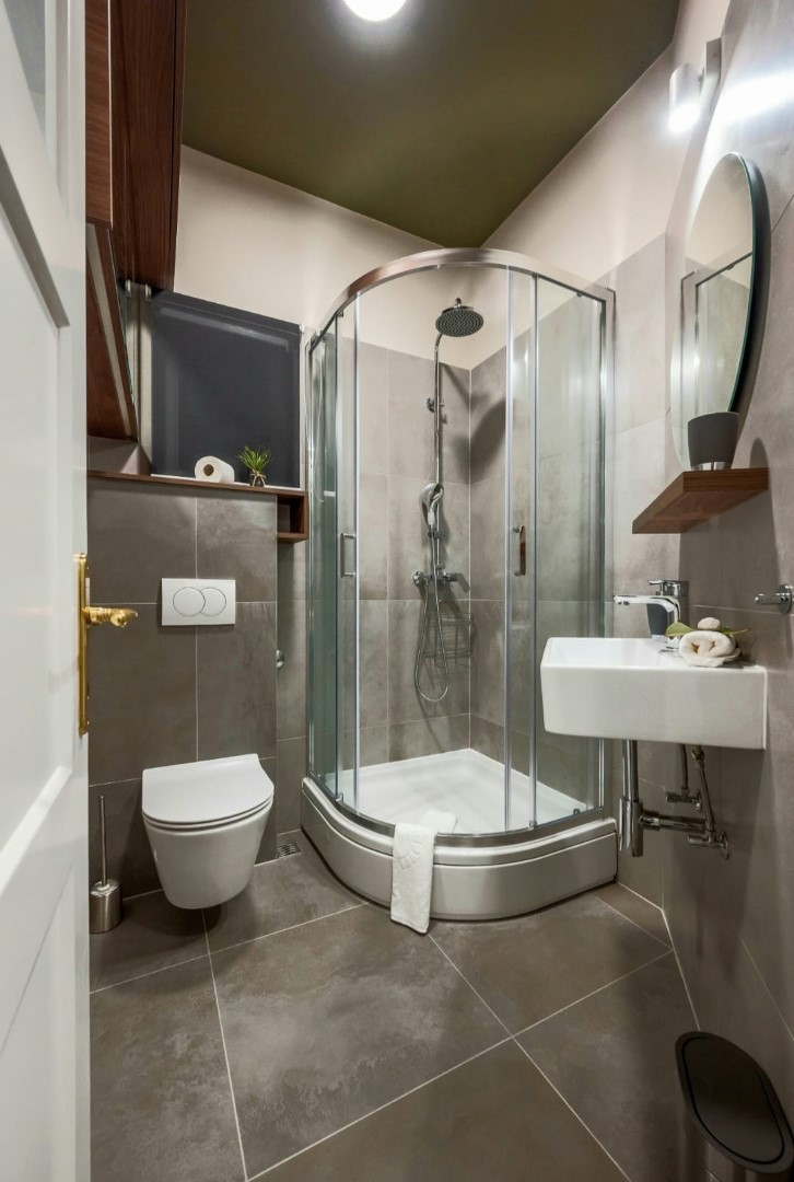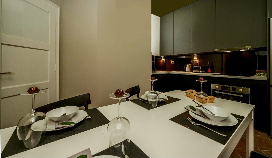 Green suit is a modern accommodation equipped according to high aesthetic standards. It consists of two bedrooms with king size beds in both, making it ideal for families or groups of friends. A spacious living room with a huge flat smart TV and selected design solutions is provided for social gatherings, as well as a kitchen with a dining room equipped with all modern appliances, from a dishwasher to a microwave, toaster… The bathroom with a shower invites you to relax with its calming tones, and is available You also have a separate toilet. Thanks to the well-arranged AC devices, the apartment maintains a pleasant temperature, and the entire space is also covered by a fast WI-FI network.