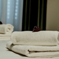 - Gather used towels: Please place all used towels together on the bathroom floor.