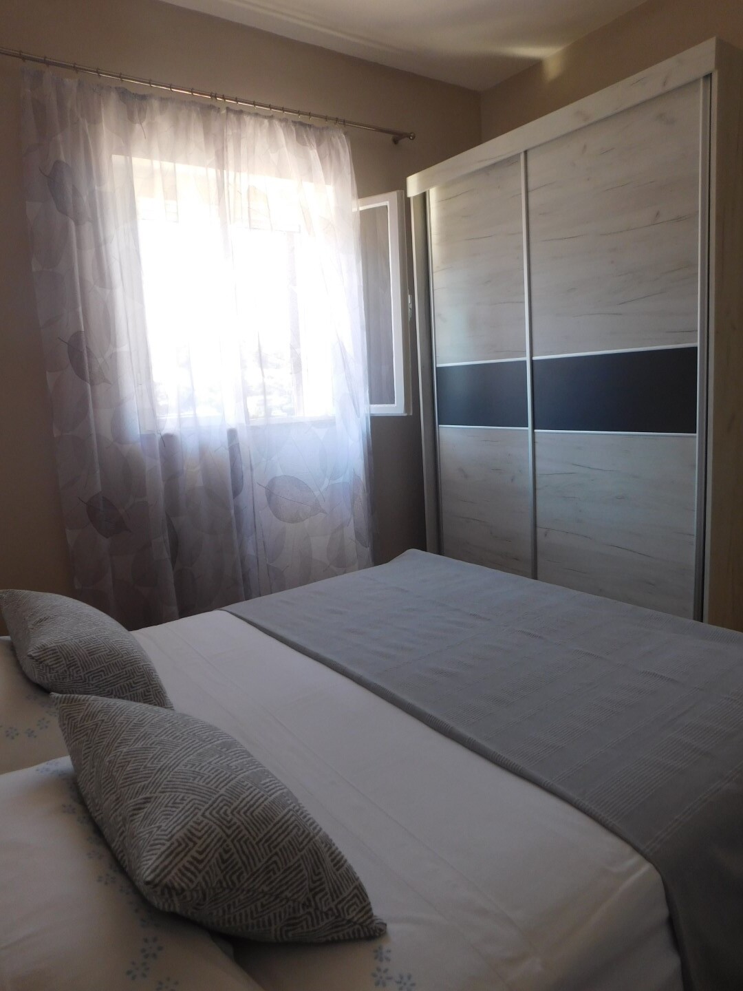 The apartment features two bedrooms, each with a cozy queen-size bed, ensuring a restful night’s sleep for everyone. It also includes a fully equipped kitchen, perfect for preparing meals at your convenience, and a private bathroom with all the necessary amenities. Additionally, the apartment offers access to a lovely terrace, where you can unwind and take in the serene surroundings and sea views.