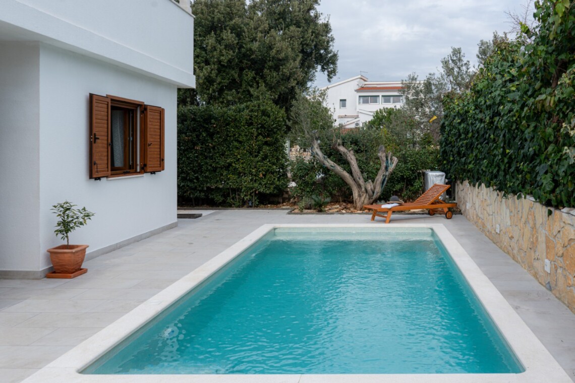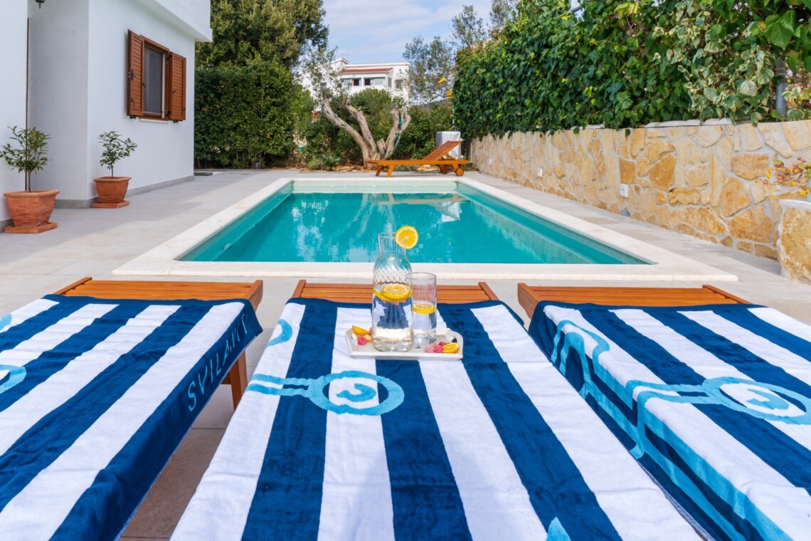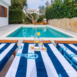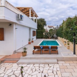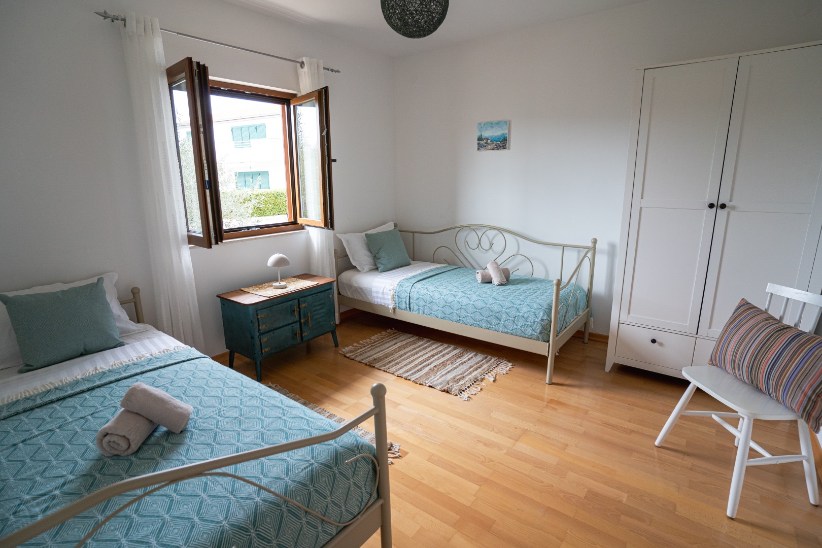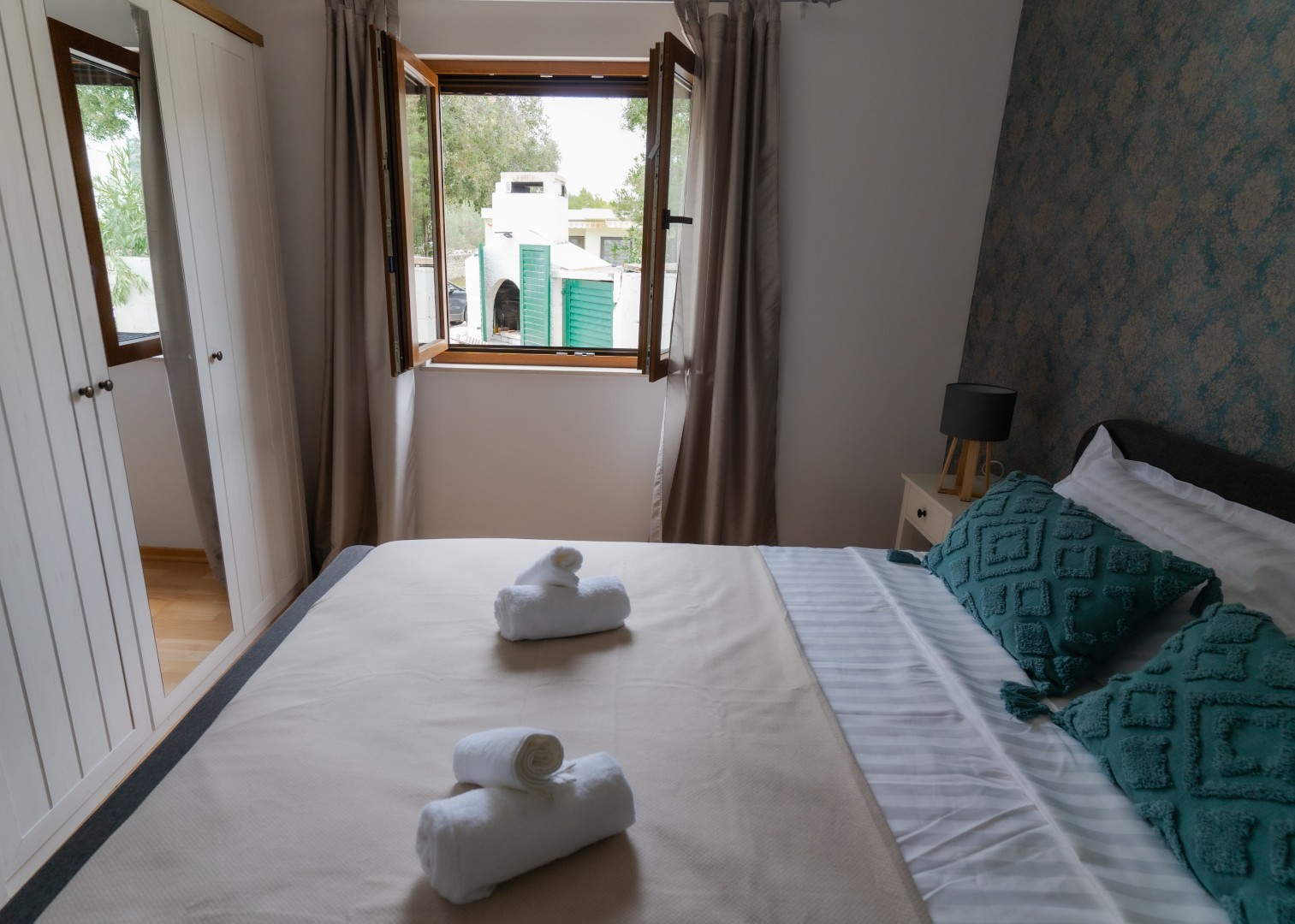Behind the house, a shared swimming pool is available for guests from all three apartments to enjoy. Unwind on the sun loungers by the pool and soak up the sun in a tranquil setting.