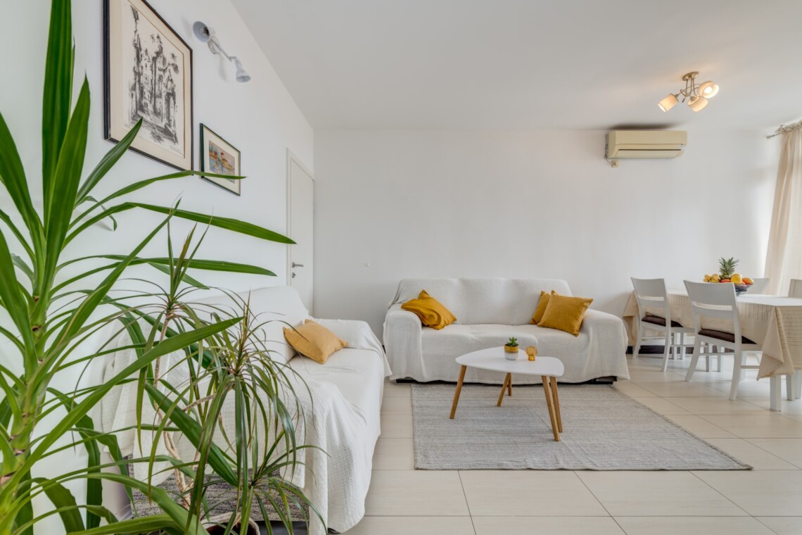 This apartment boasts a fully equipped kitchen complete with a dishwasher, a dining table, and a cozy living room adorned with a TV. Step out onto the balcony from the living room and be greeted by a breathtaking view of the sea. Step out onto the balcony from the living room and be greeted by a breathtaking panorama of the sea, offering a tranquil retreat to unwind. With two bedrooms—one furnished with a queen-size bed and the other with a single bed—Vuvuzela Bay comfortably accommodates up to 4 guests, with an additional sofa bed in the living room. The bathroom is equipped with a washing machine for added convenience.